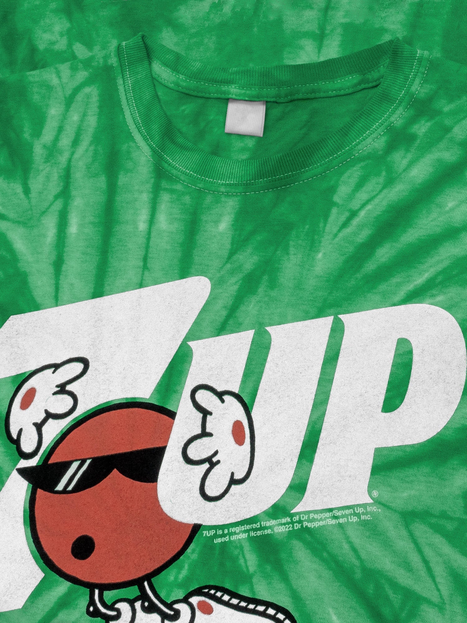 Bursting with crisp and refreshing lemon-lime flavor in every drop - bubbly 7UP is definitely our favorite un-cola! We've paid tribute to this delicious soda with a throwback graphic tee featuring the classic 7UP logo and cartoon mascot "Cool Spot". To complete the vintage look and feel on this retro tee - we've printed the graphic on a soft, Spider Kelly tie dye t-shirt.