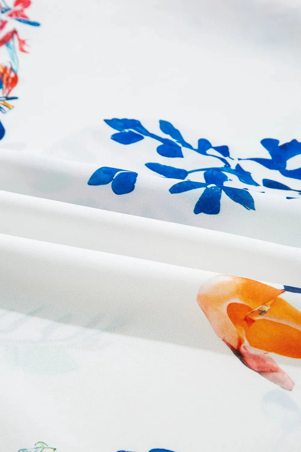 - Colorful floral print throughout