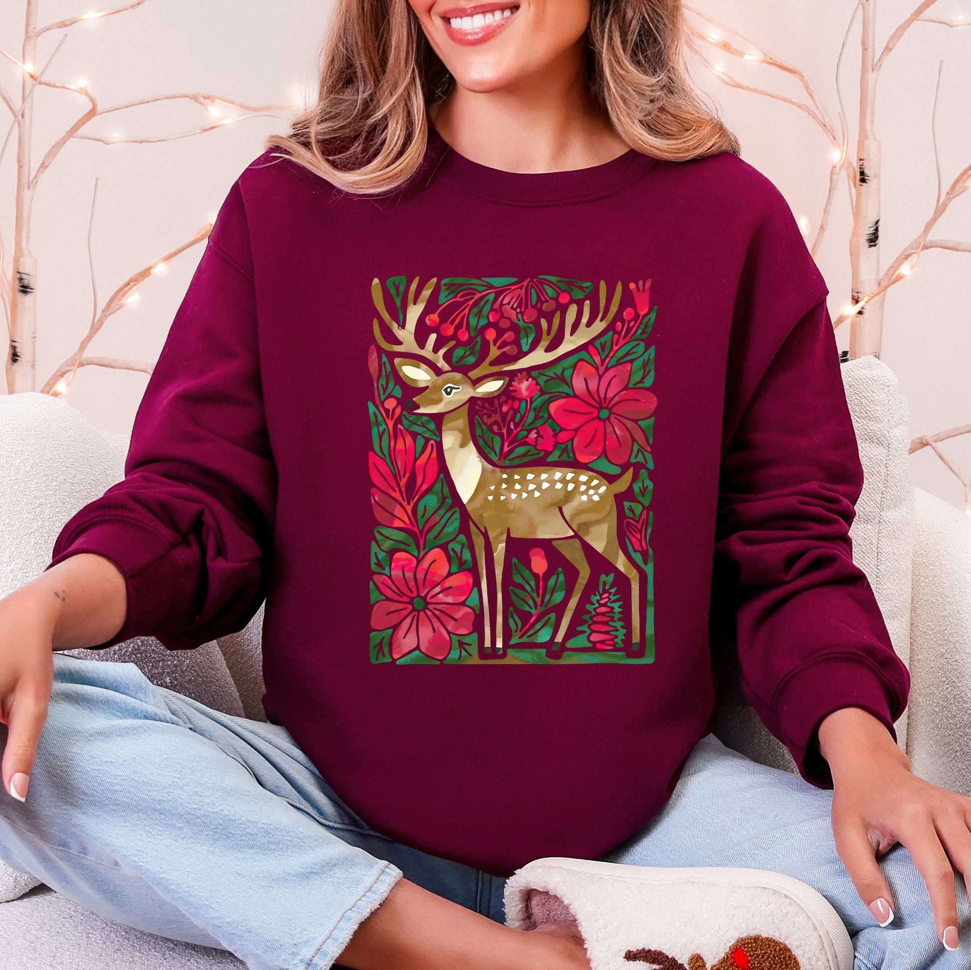 Celebrate the season in cozy, retro charm with our Christmas Deer, Colorful, Flowers, Santa, Snow Sweatshirt. Built on the trusted Gildan 18000 Graphic Sweatshirt silhouette, this festive piece blends a soft fleece interior with a durable cotton/polyester blend to keep you warm, comfortable, and effortlessly stylish all winter long. Featuring a vibrant retro Christmas graphic, it’s the perfect way to wear your holiday spirit with confidence.