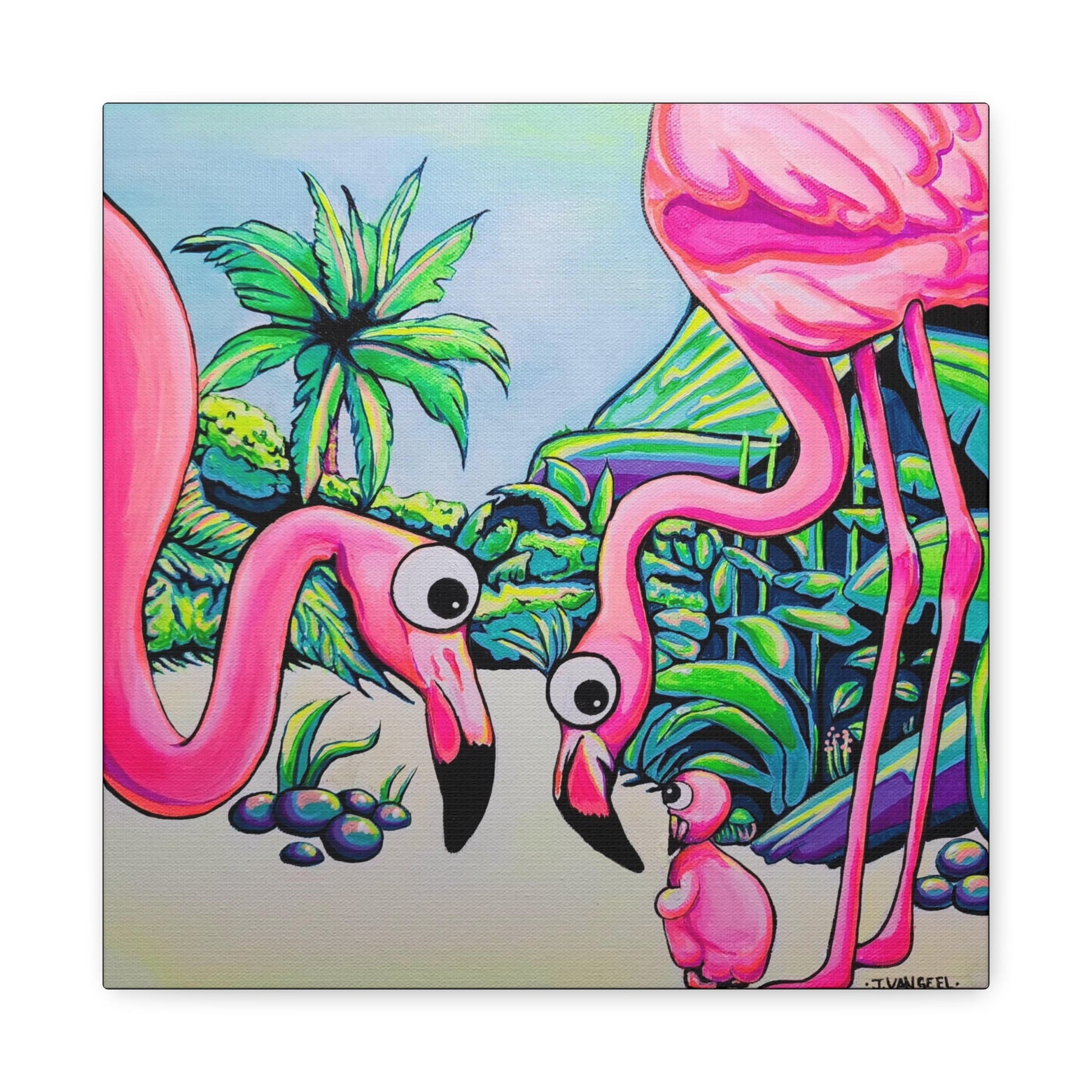 Cyclops Flamingo Family Canvas Art Print, Original Artist Design, Unique Wall Decor