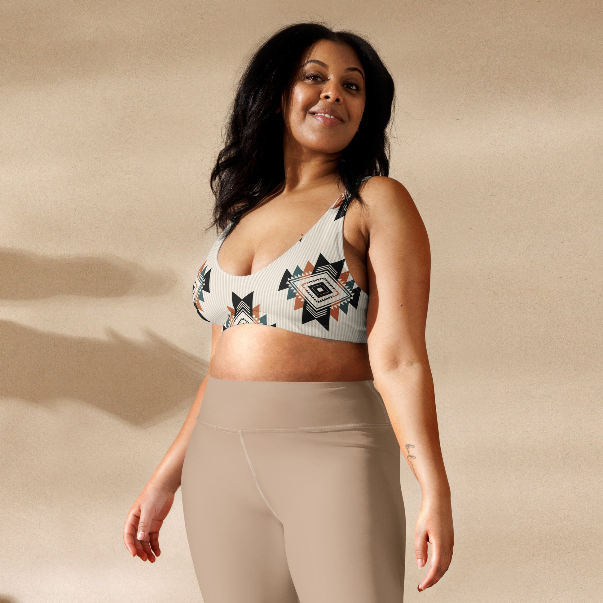 Get this Recycled padded bikini top for your summer adventures! It’s comfortable and includes pads you can remove. To make this top even more versatile, mix and match it with different bikini bottoms for a trendy look.