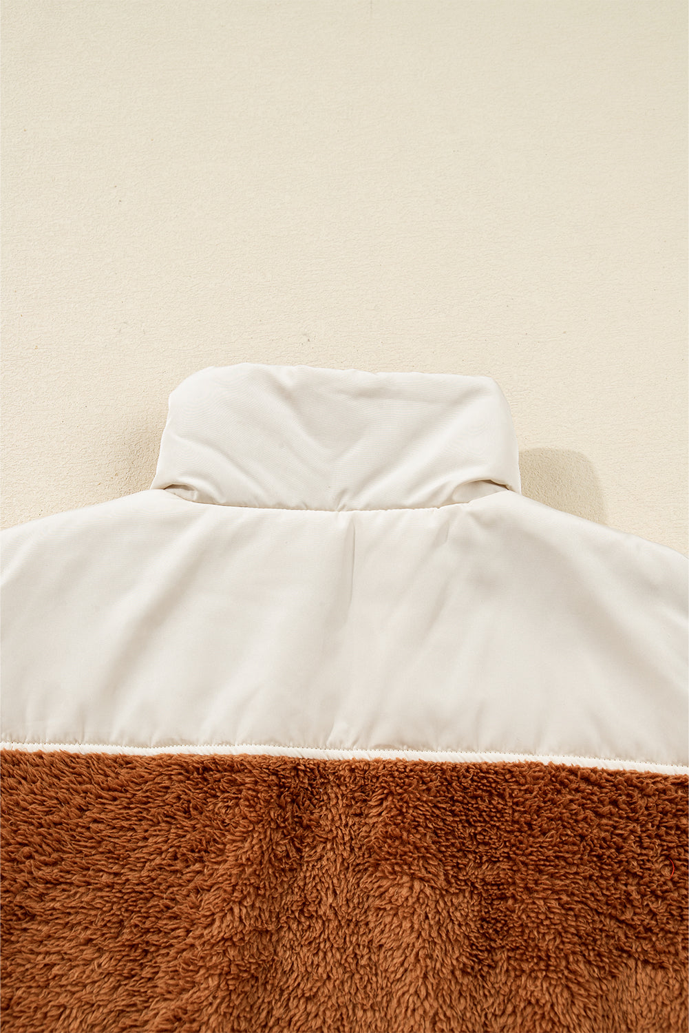 Meet Elizabeth Patchwork Zipper Stand Vest—effortless, flattering, and easy to style for everyday life. It’s quite easy to style cute with this vest. Color block design with faux shearling patchwork. High neck pullover style with a half zip closure. Finished with a cinched hem to keep the warmth better. vests are fashion essentials for winter wardrobes.