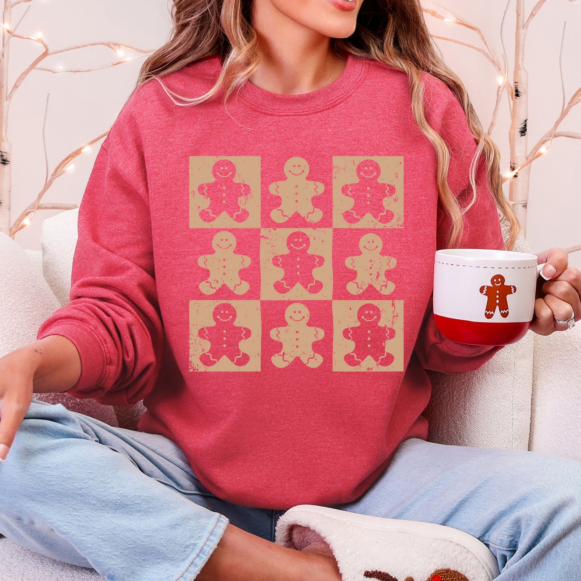 Gingerbread Men, Christmas Cute, Minimalist Sweatshirt brings festive charm to your everyday wardrobe with cozy warmth and playful retro flair. Built on the trusted Gildan 18000 graphic sweatshirt silhouette, this piece combines a soft fleece interior with a durable cotton/polyester blend to keep you snug and stylish all season long. The vibrant retro graphic pops against festive colors, making it the perfect way to wear your holiday spirit with effortless charm.