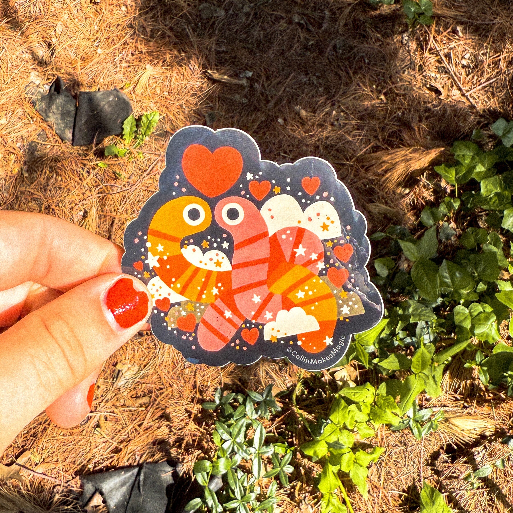 This friend is about 3 inches across, and perfect to stick literally anywhere. (I have one on the back of my car!) I ship all my stickers in eco-friendly packaging, and send em’ out with a whole bunch of love.