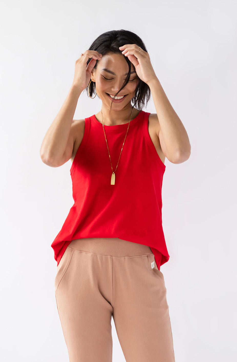 Show your sexy strength with this essential tank. Comfort and style have never looked so good. The KO is cut to show what you like to show and hide what you might want to keep for yourself. We like to pair the KO with our Drew Wide Leg Pant.