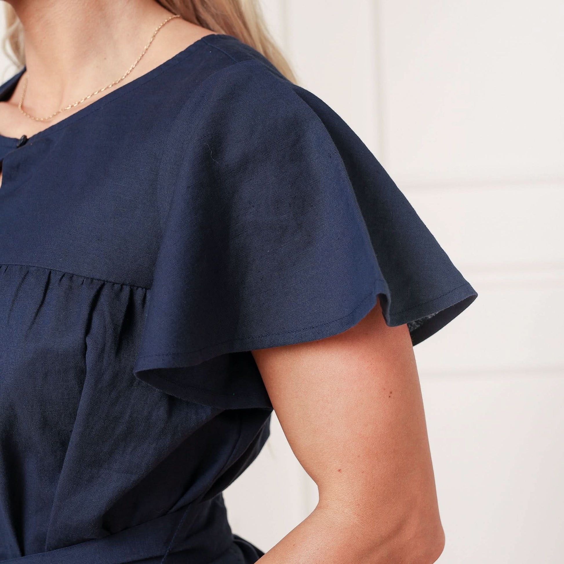 Rock a fresh look in our bell sleeve dress cut from our lightweight and soft organic cotton and linen blend. Features flowy bell sleeves, a keyhole closure with button at the center front, and a removable waist sash for versatile styling. A lovely silhouette that could be dressed up or down for all that spring and summer brings!