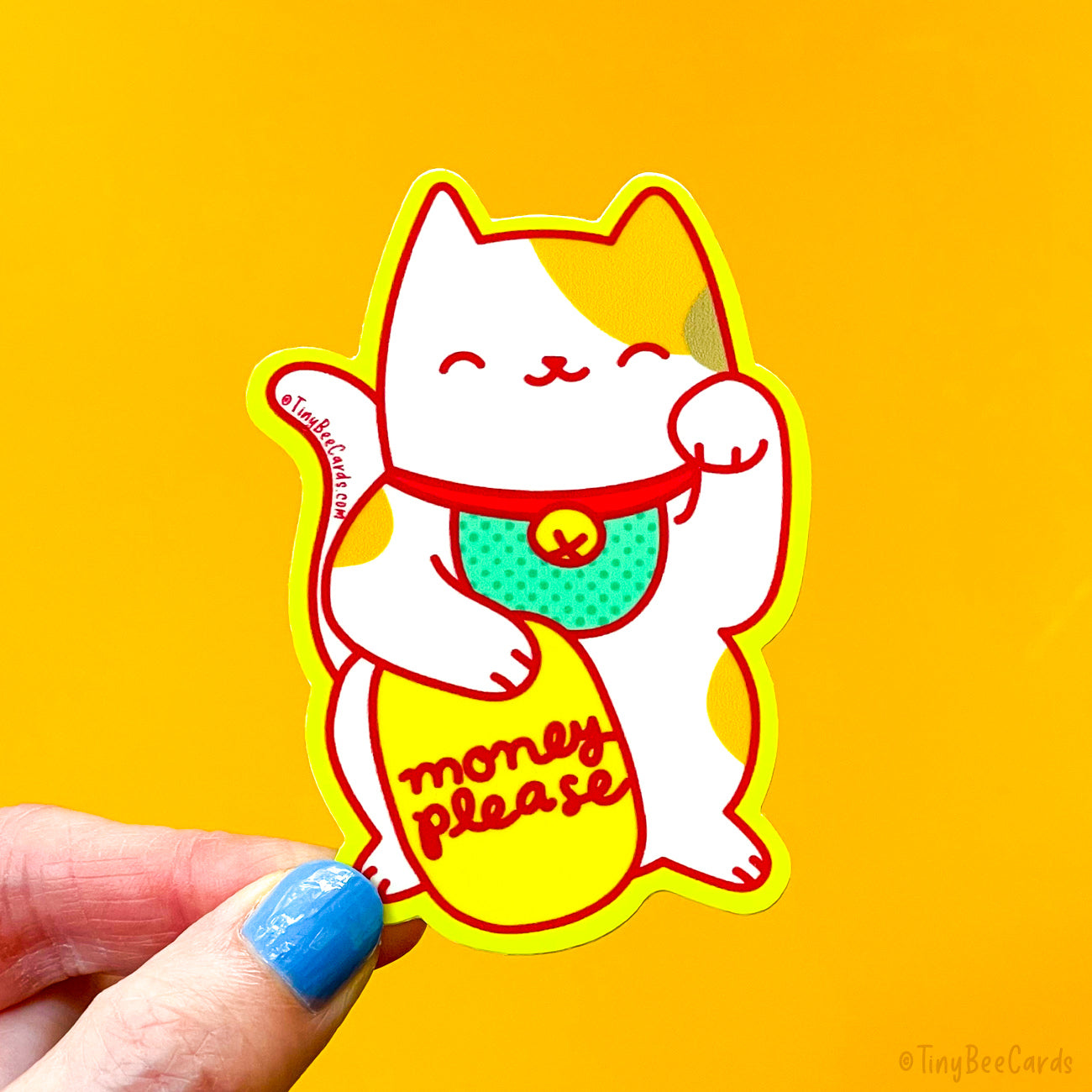 Lucky Cat Maneki Neko Vinyl Sticker "Money Please"