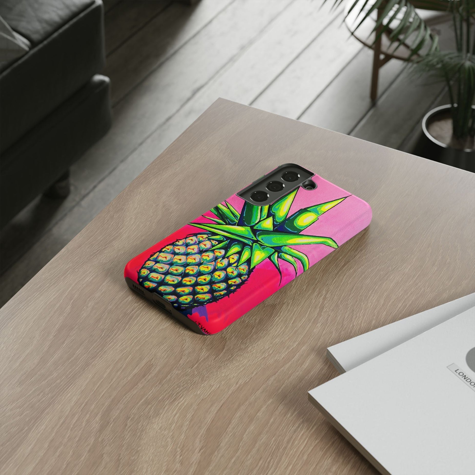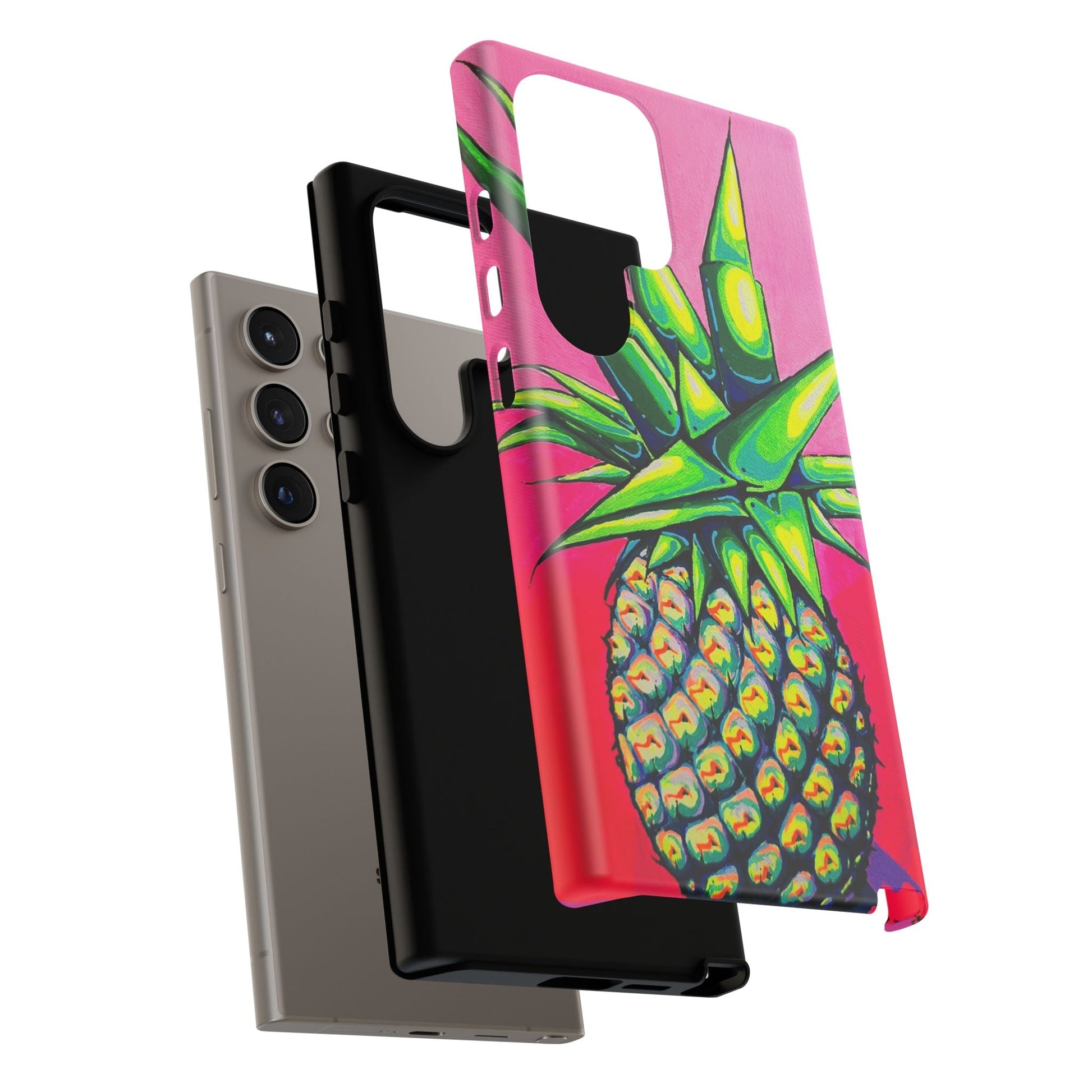 This Neon Pineapple Tough Phone Case is a vibrant and durable accessory for your phone. With its impact-resistant materials and shock absorption, it provides excellent protection against drops and tears. The neon pineapple design gives off a fun and summery vibe, making it perfect for tropical holidays or everyday use. Suitable for adults.