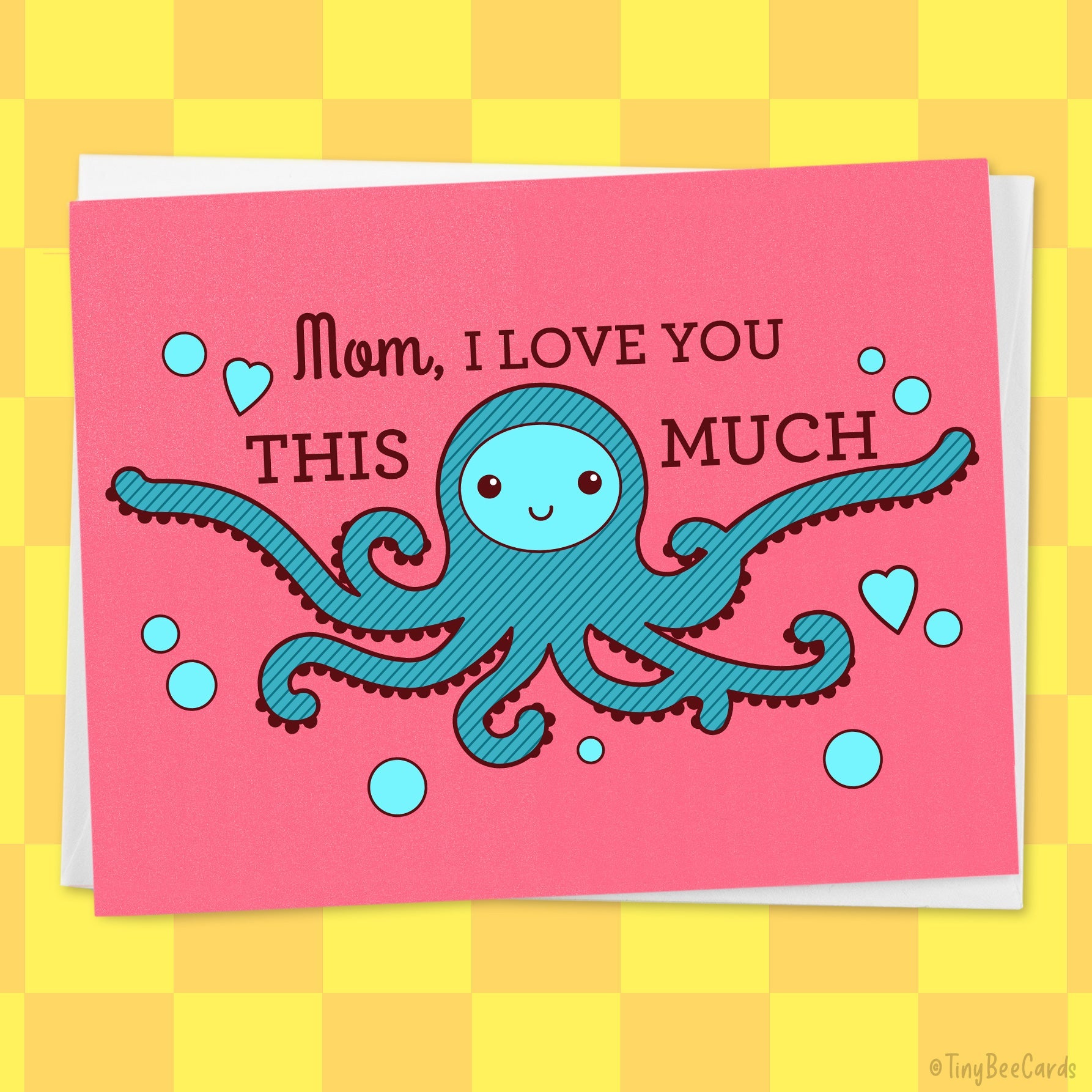 Mom, I Love You This Much! Tell your Mom how much you love her with this cute octopus stretching its arms out to demonstrate!