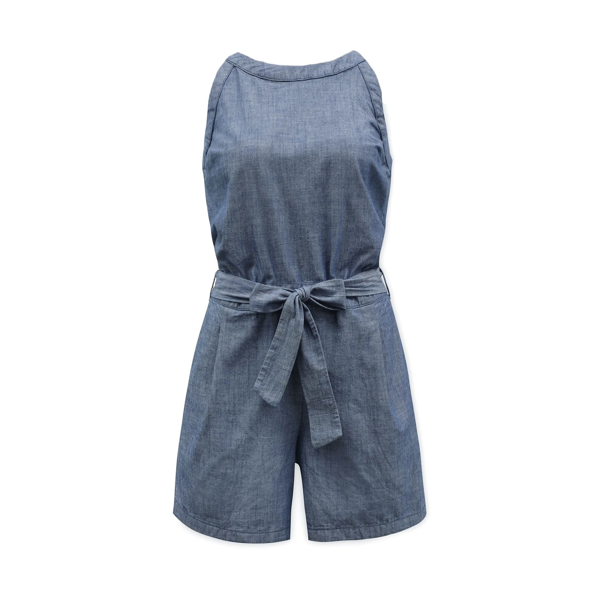 Cut in one of our favorite fabrics, a lightweight organic cotton chambray, this romper is our new summertime go-to. Features a halter neckline, removable waist tie, and button keyhole and zipper closure at the center back. Its softly structured but still relaxed enough for everyday wear - and did we mention it has pockets?