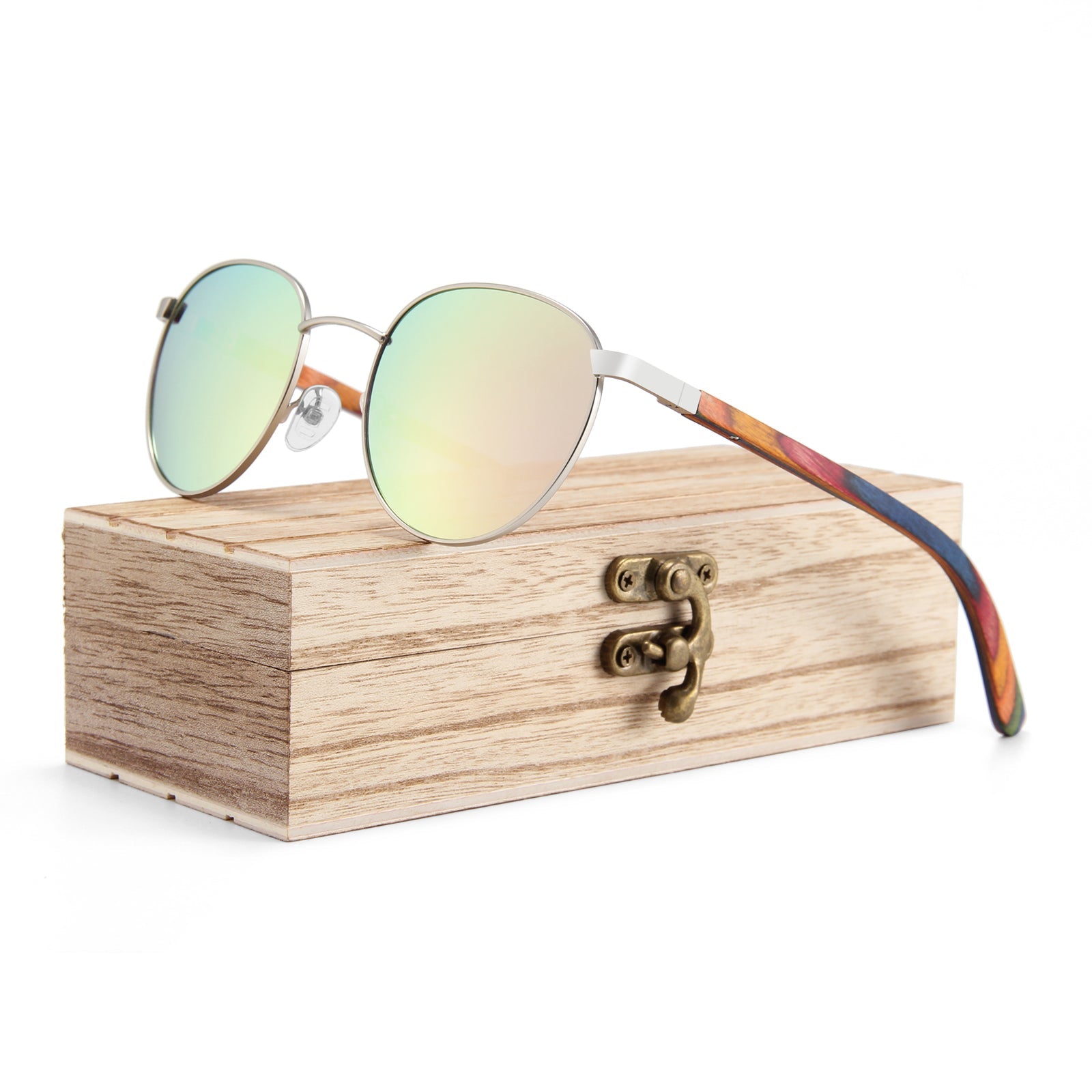 Step into the spotlight with the Peacock Onofres—a vibrant twist on our best-selling round frame silhouette. These sleek, modern sunglasses are designed for those who appreciate timeless design with a splash of personality. What sets the Peacock Onofres apart is their multicolored, hand-finished wooden arms. A rich blend of blues, greens, oranges, and reds evokes the iridescent beauty of peacock feathers, giving each pair a unique, nature-inspired look. The lightweight yet durable construction ensures all-day comfort, while the metal frame adds a polished touch of sophistication.
