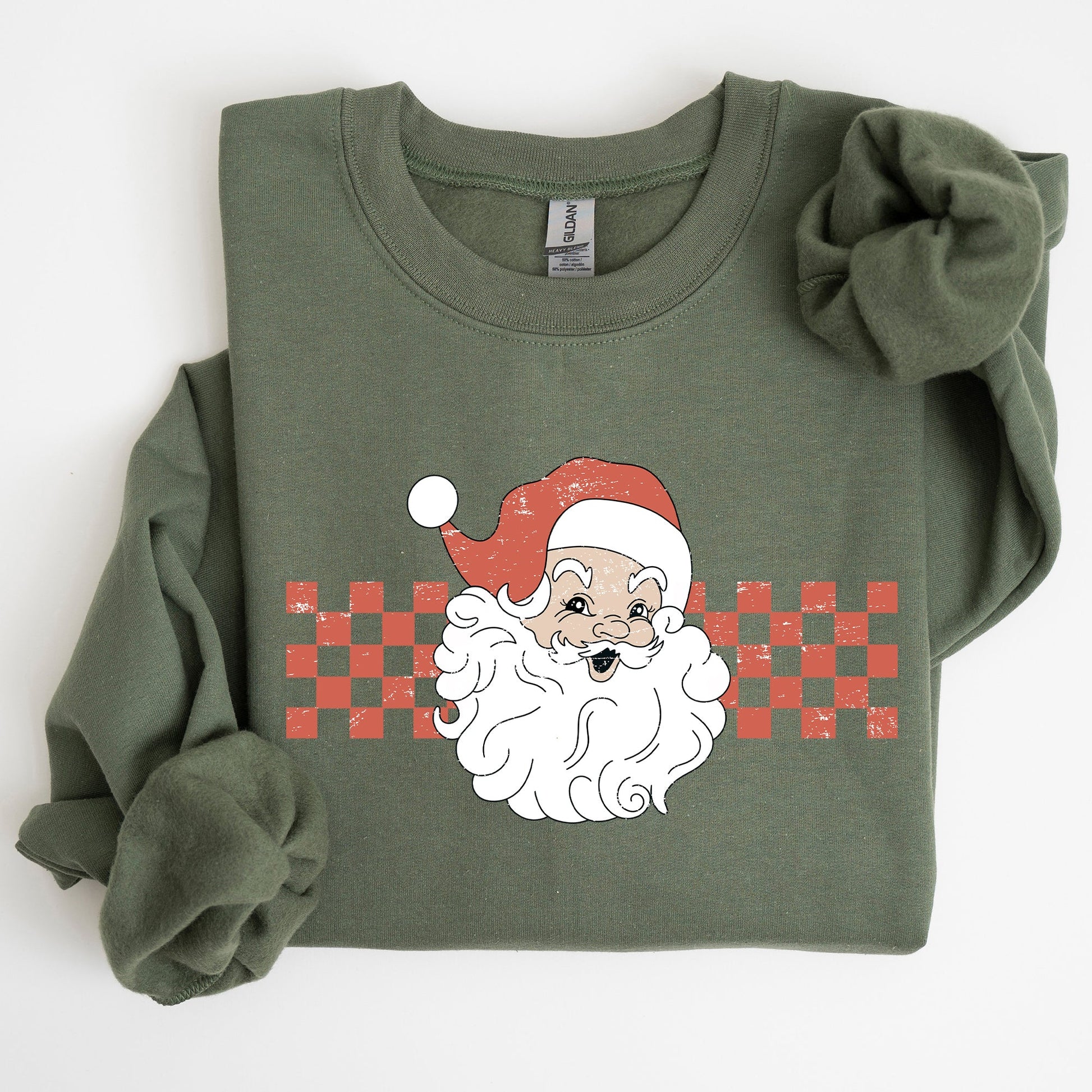 Retro Santa Checkered, Red, Christmas, Winter, Snow, Xmas Sweatshirt