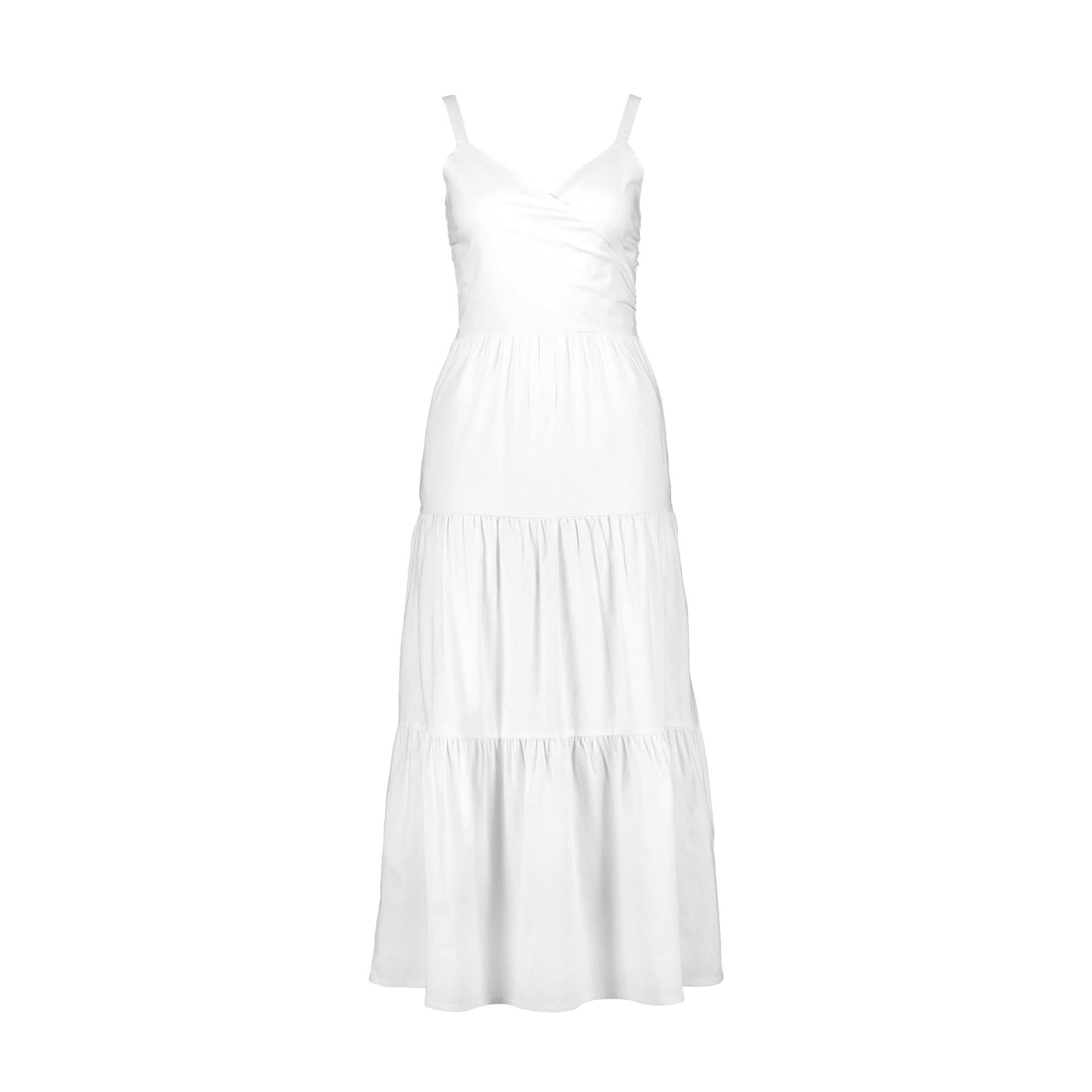 As summery as it gets! Made of a light and breathable organic cotton and linen blend, our beautiful tiered wrap dress features a flattering wrap front bodice, smocked back for comfortable fit, and a flowing tiered midi skirt. Fully lined in soft cotton batiste. And did we mention, it has pockets?