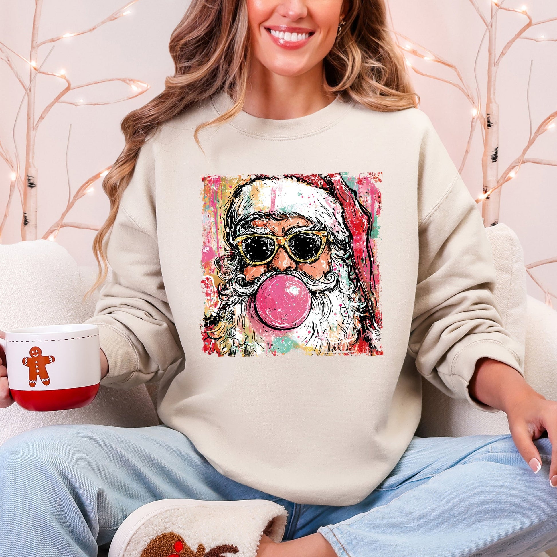 Vintage Santa, Sketched, Christmas, Bubble Gum, Cute Sweatshirt