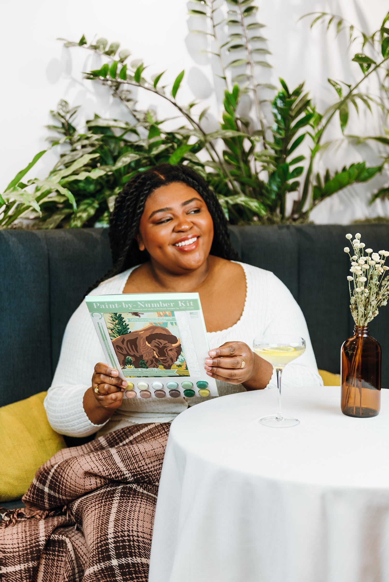 Yellowstone National Park paint-by-number kit captures the wild beauty of America’s first national park with a majestic bison standing in a field of daisies and pine trees in front of Old Faithful. Completing the 12-color acrylic painting can take between 12-14 hours. When completed, select a frame at your local craft or thrift store and display your new handmade home decor! This paint-by-number kit is recommended for adults and teens age 13 and up.